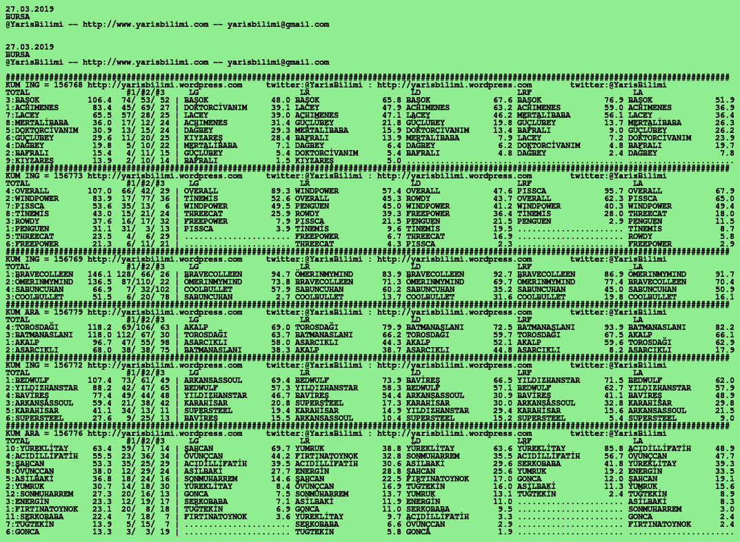 27.03.2019.BURSA tahminleri 26 Salı Mar 2019 Posted by yarisbilimi in bursa, yorum ≈ Yorum bırakın Etiketlerbursa