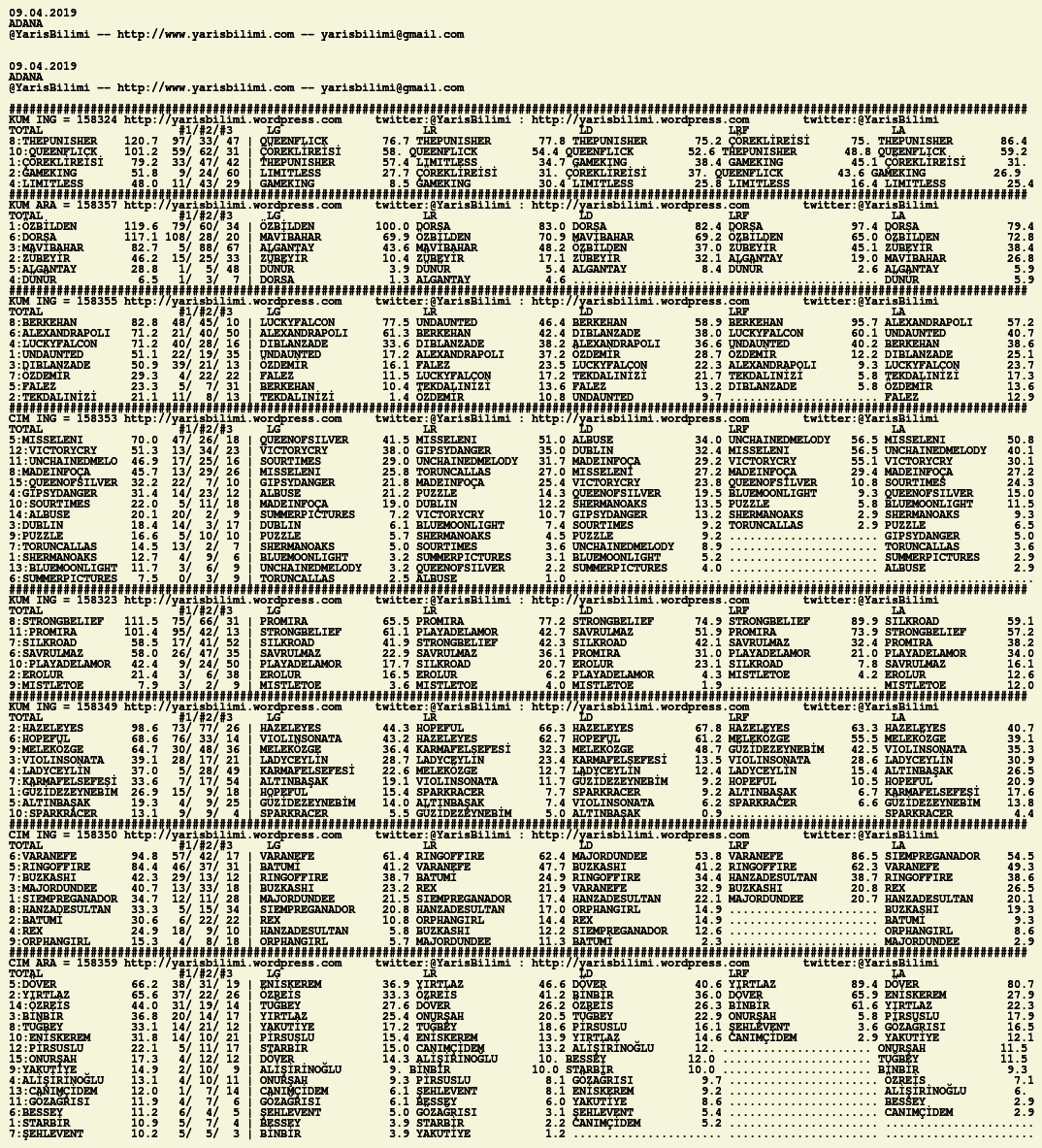 Görsel 09.04.2019.ADANA tahminleri 08 Pazartesi Nis 2019 Etiketleradana Yazan: yarisbilimi | Filed under adana, yorum ≈ Yorum bırakın