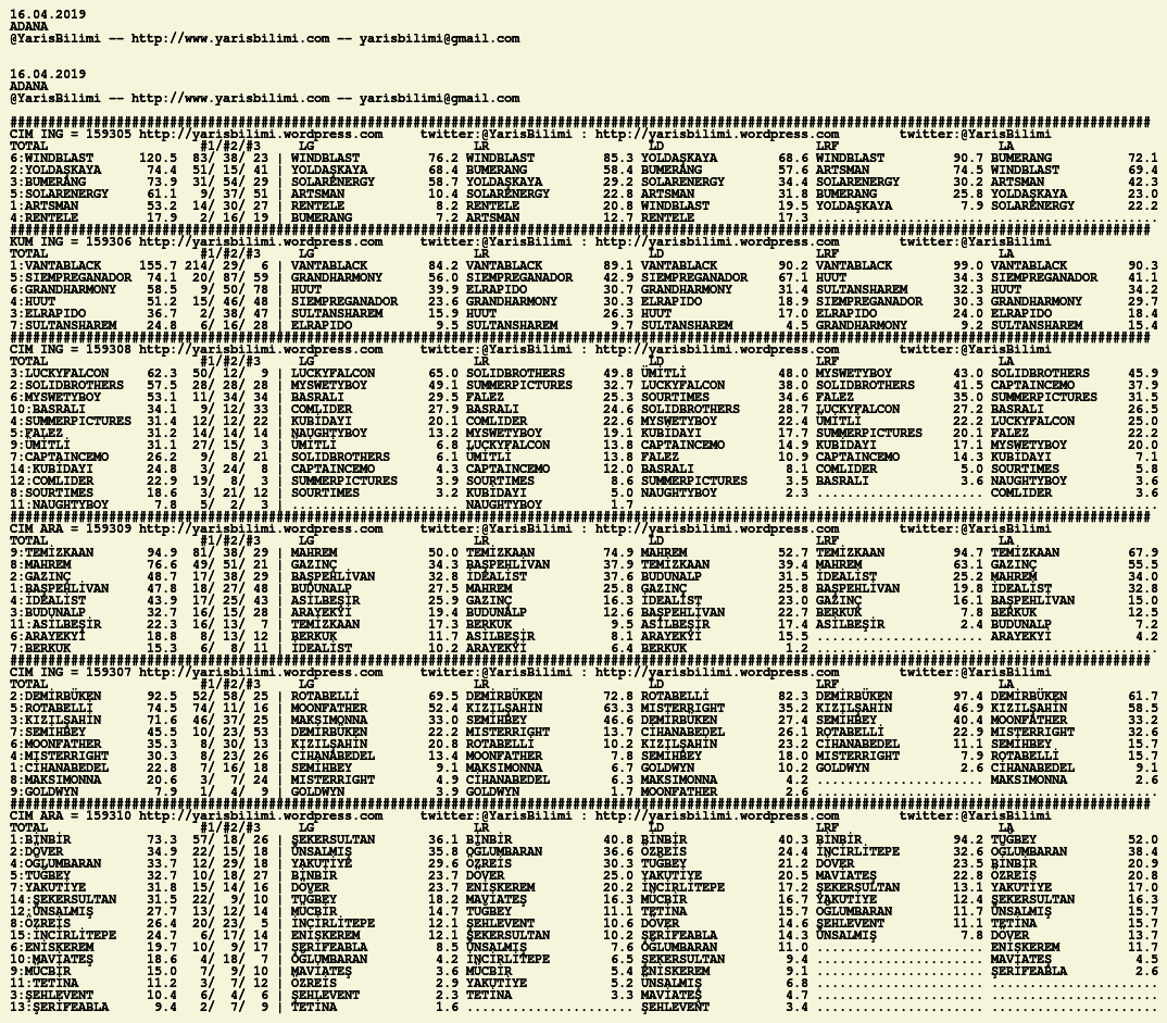 Görsel 16.04.2019.ADANA tahminleri 15 Pazartesi Nis 2019 Etiketleradana Yazan: yarisbilimi | Filed under adana, yorum ≈ Yorum bırakın