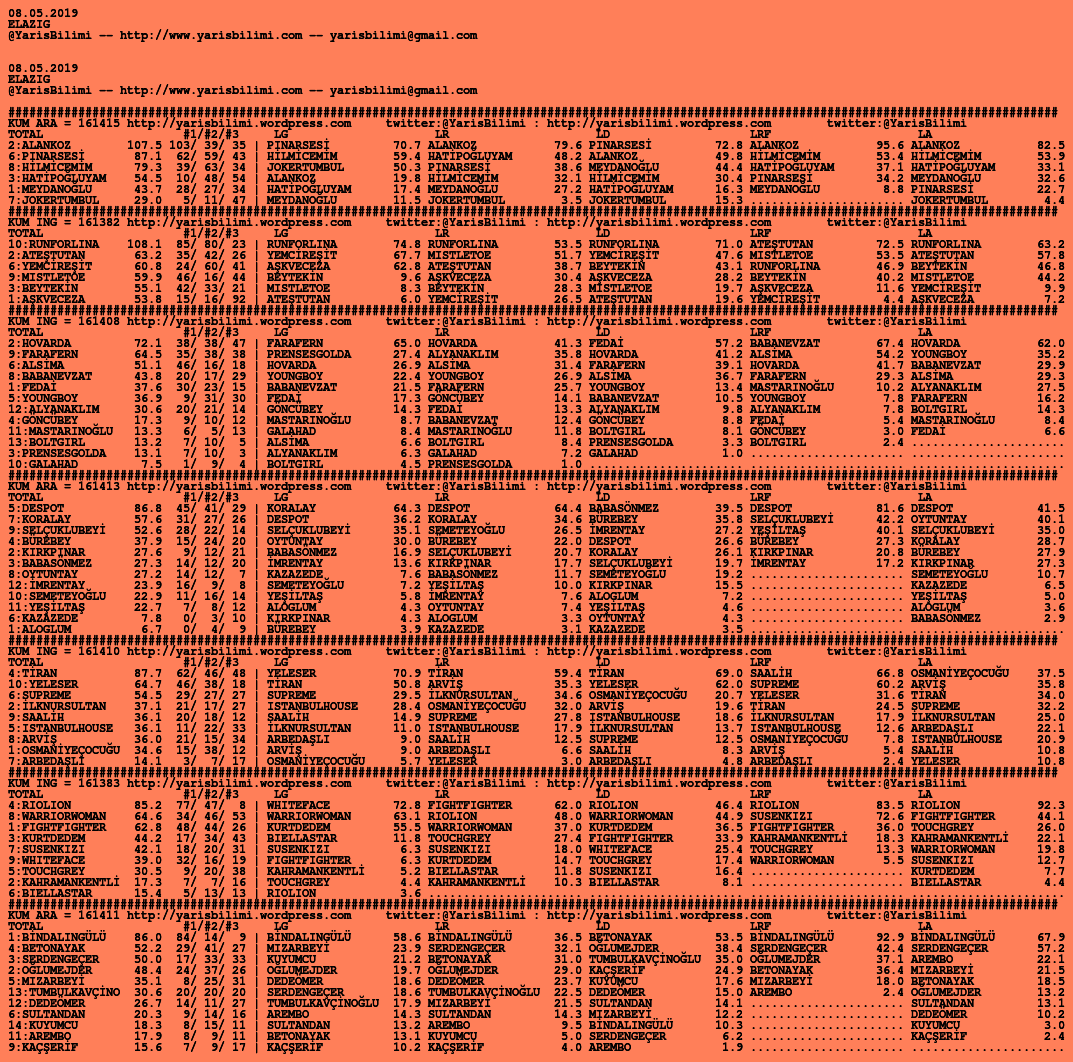 08.05.2019.ELAZIG tahminleri 07 Salı May 2019 Posted by yarisbilimi in elazig, yorum ≈ Yorum bırakın Etiketlerelazig