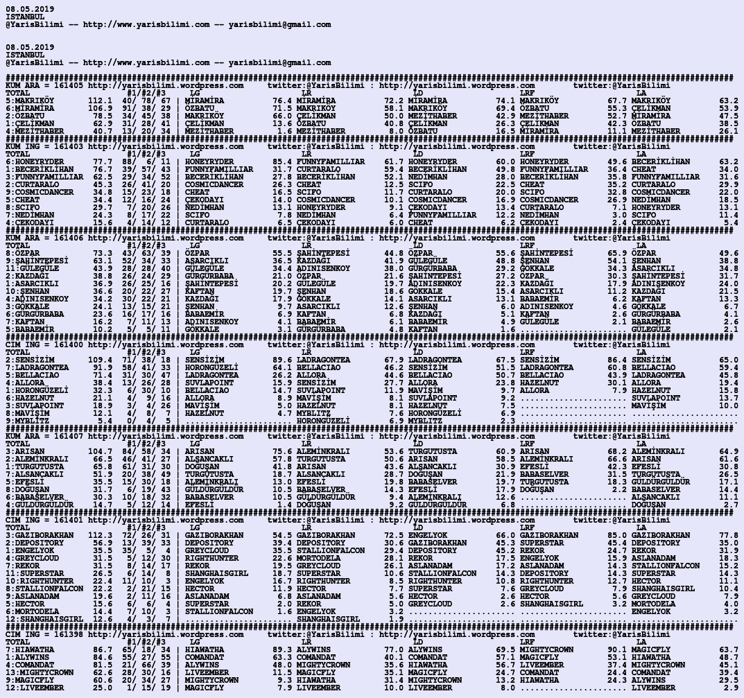 08.05.2019.ISTANBUL tahminleri 07 Salı May 2019 Posted by yarisbilimi in istanbul, yorum ≈ Yorum bırakın Etiketleristanbul