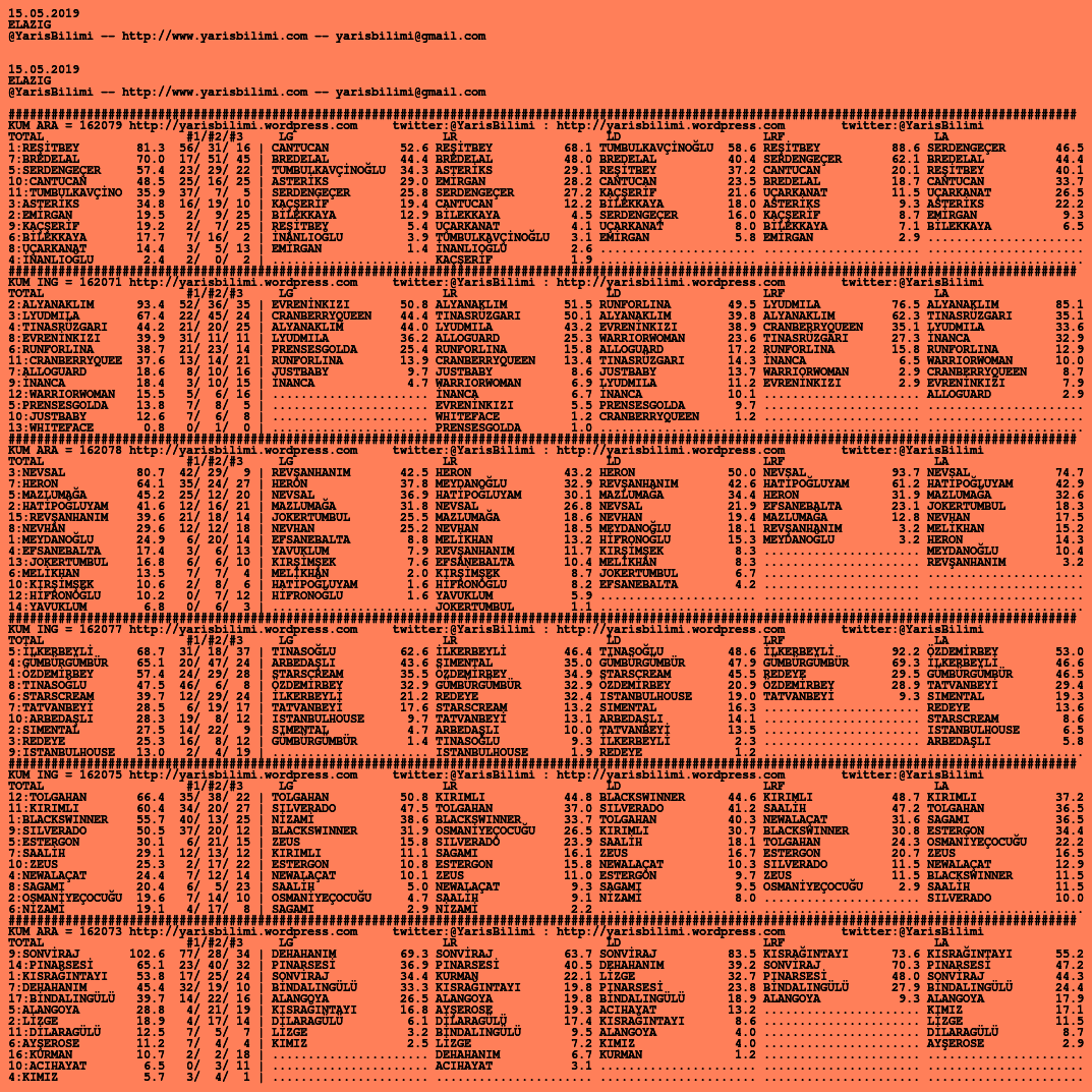 15.05.2019.ELAZIG tahminleri 14 Salı May 2019 Posted by yarisbilimi in elazig, yorum ≈ Yorum bırakın Etiketlerelazig