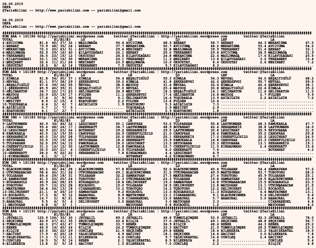 06.05.2019.URFA tahminleri 05 Pazar May 2019 Posted by yarisbilimi in urfa, yorum ≈ Yorum bırakın Etiketlerurfa