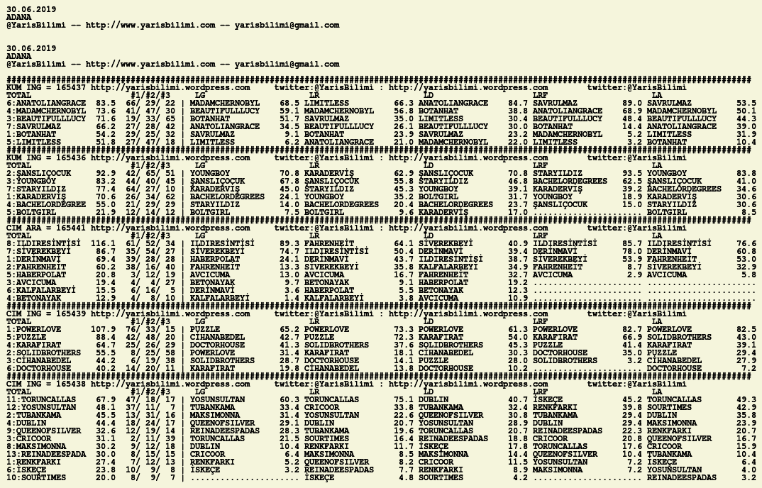 30.06.2019.ADANA tahminleri 29 Cumartesi Haz 2019 Posted by yarisbilimi in adana, yorum ≈ Yorum bırakın Etiketleradana