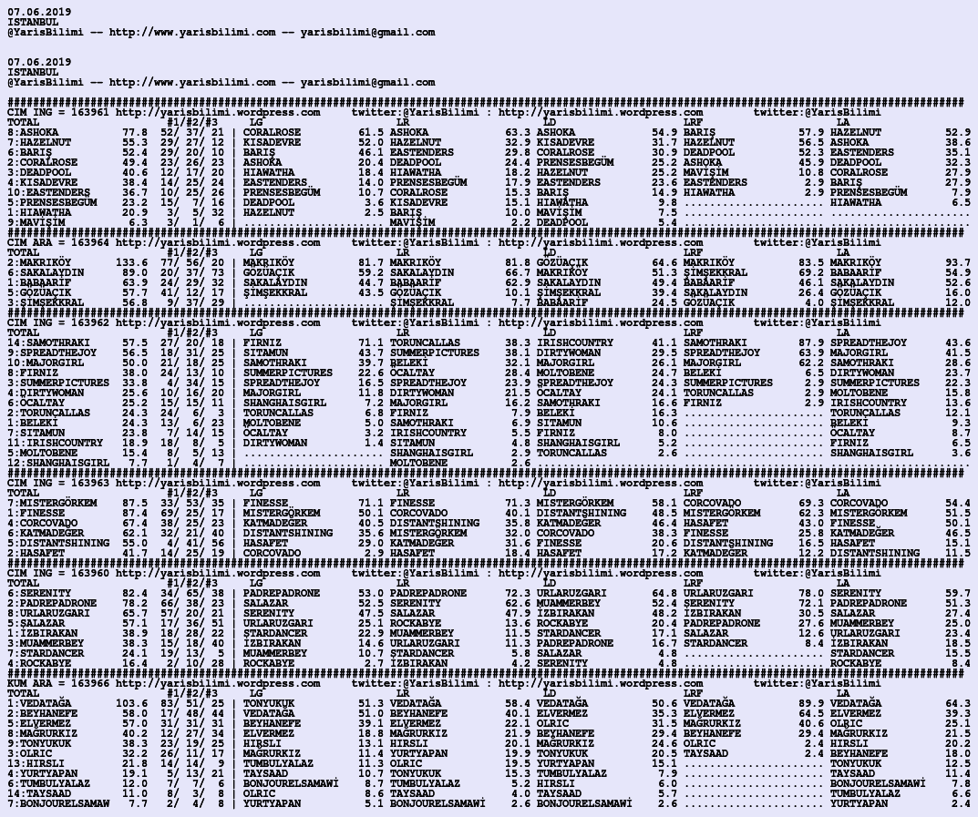 07.06.2019.ISTANBUL tahminleri 06 Perşembe Haz 2019 Posted by yarisbilimi in istanbul, yorum ≈ Yorum bırakın Etiketleristanbul