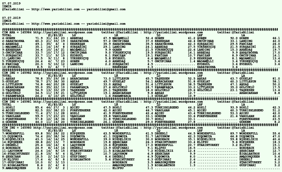 07.07.2019.IZMIR tahminleri 07 Pazar Tem 2019 Posted by yarisbilimi in izmir, yorum ≈ Yorum bırakın Etiketlerizmir