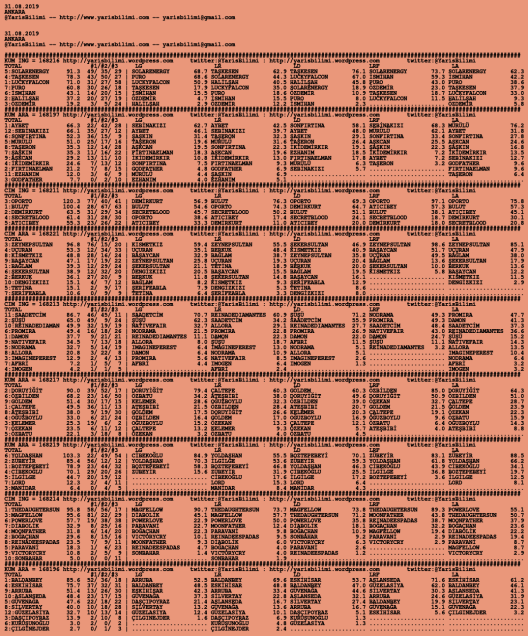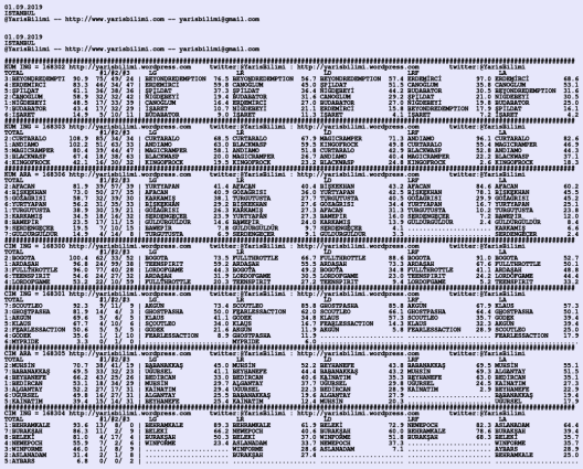01.09.2019.ISTANBUL tahminleri 31 Cumartesi Ağu 2019 Posted by yarisbilimi in istanbul, yorum ≈ Yorum bırakın Etiketleristanbul