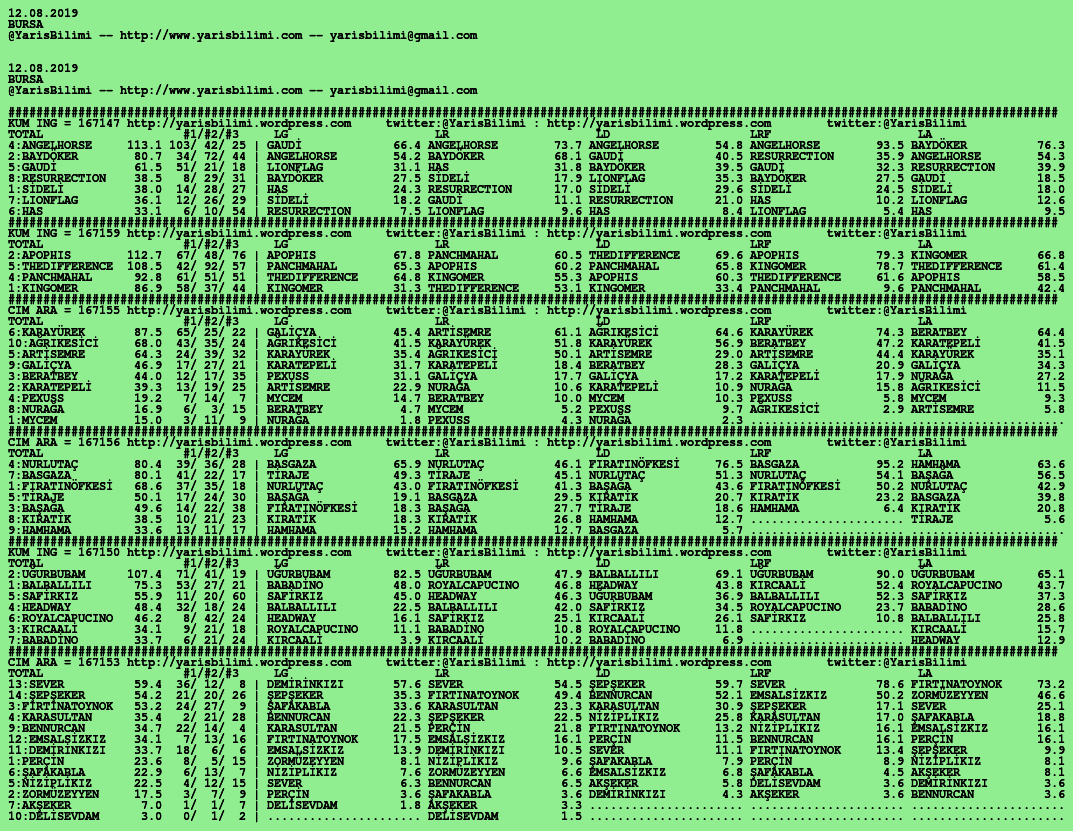 12.08.2019.BURSA tahminleri 12 Pazartesi Ağu 2019 Posted by yarisbilimi in bursa, yorum ≈ Yorum bırakın Etiketlerbursa