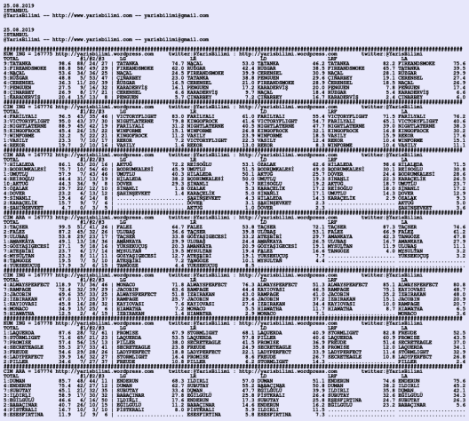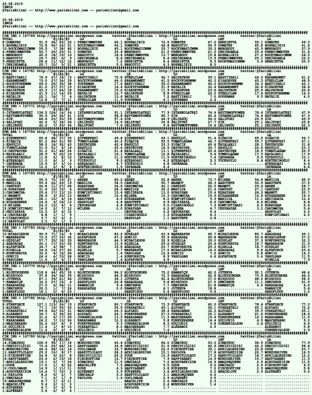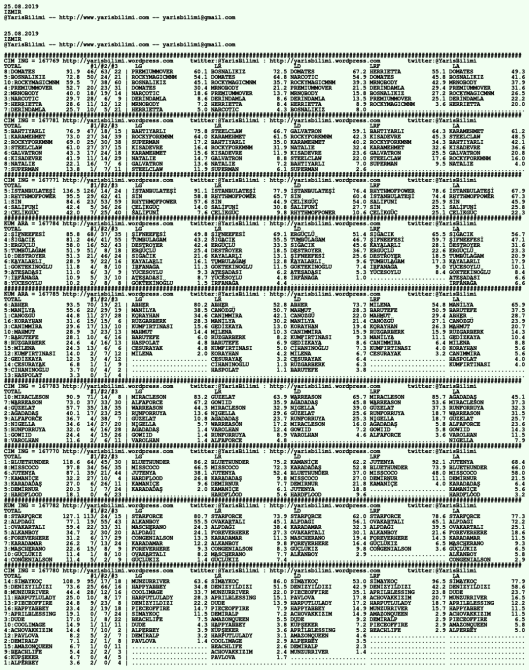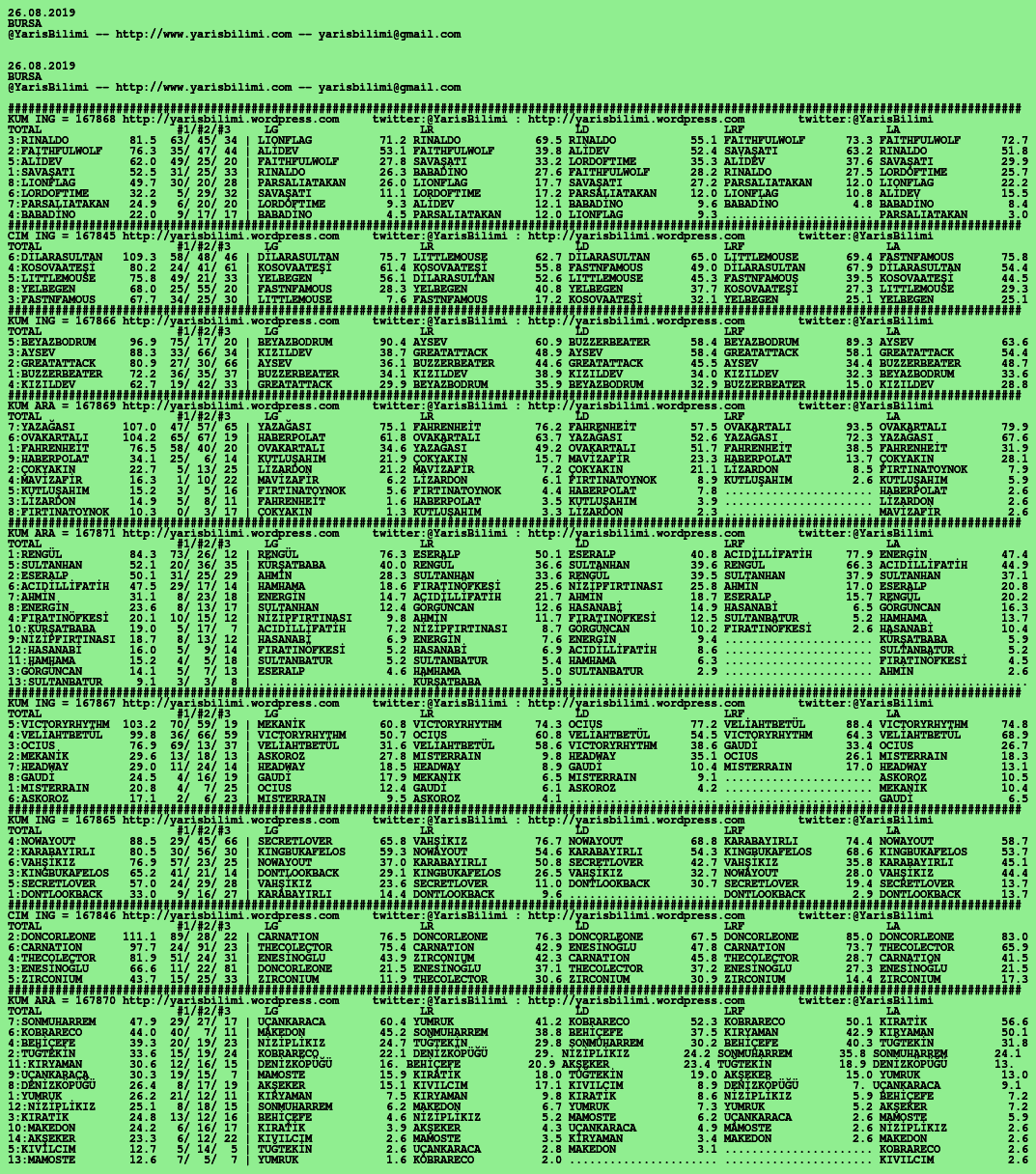 Kendi tercihlerinizi one aliniz. Bu siralamalar sizlere yardim icin hazirlanmaktadir. Ama banko, sablon tercihleriniz kisisel olmali. Eksik verileri olan atlara ozellikle dikkat edilmesini tekrarlar hepinize bol sanslar dileriz.