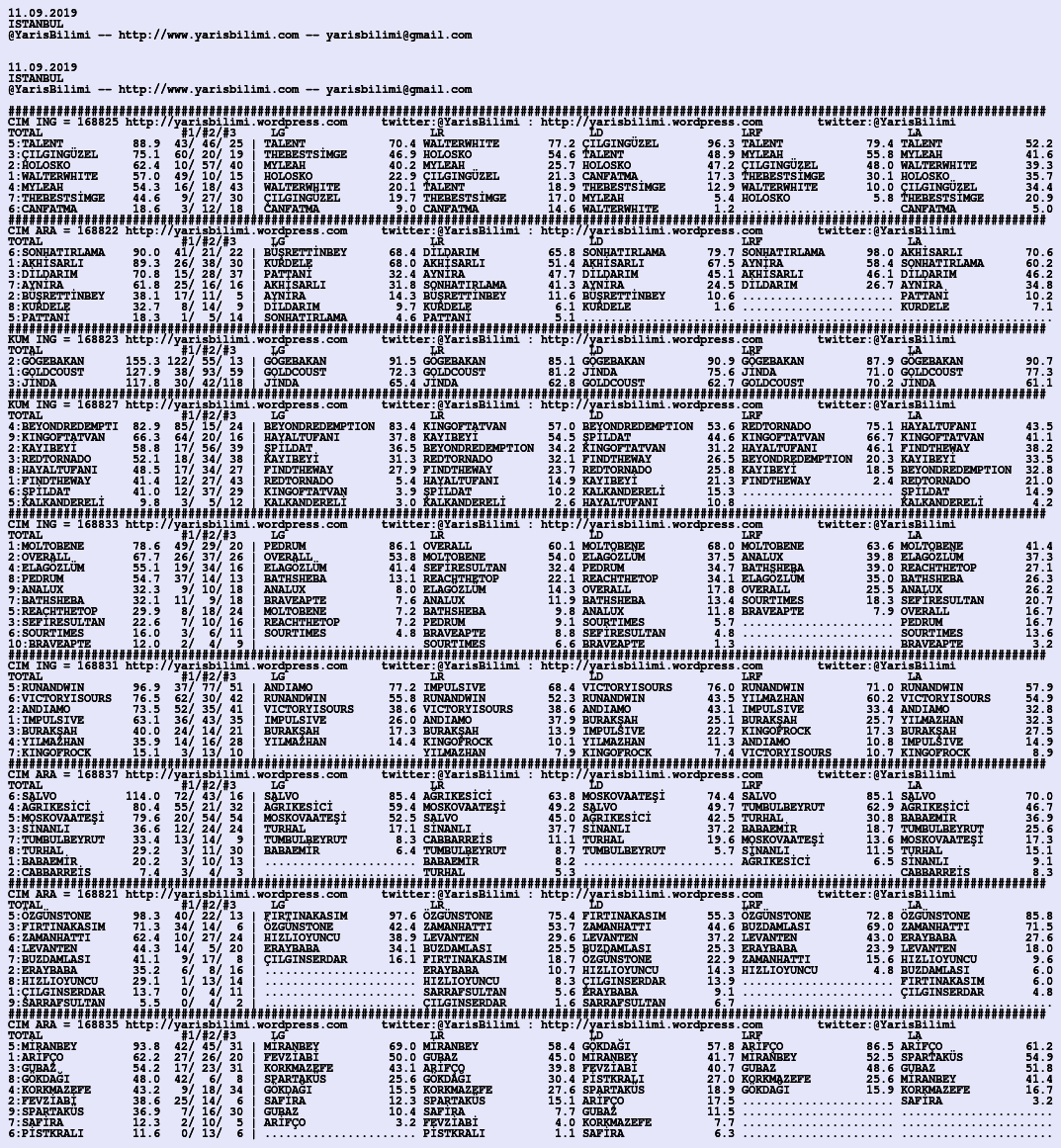 11.09.2019.ISTANBUL tahminleri 10 Salı Eyl 2019 Posted by yarisbilimi in istanbul, yorum ≈ Yorum bırakın Etiketleristanbul