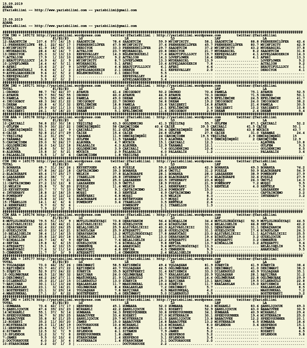 Görsel 15.09.2019.ADANA tahminleri 14 Cumartesi Eyl 2019 Etiketleradana Yazan: yarisbilimi | Filed under adana, yorum ≈ Yorum bırakın