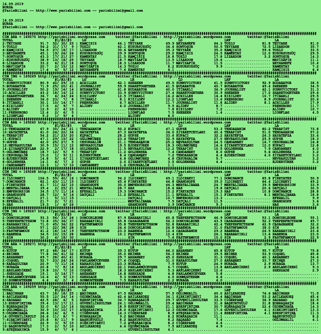 Görsel 16.09.2019.BURSA tahminleri 15 Pazar Eyl 2019 Etiketlerbursa Yazan: yarisbilimi | Filed under bursa, yorum ≈ Yorum bırakın
