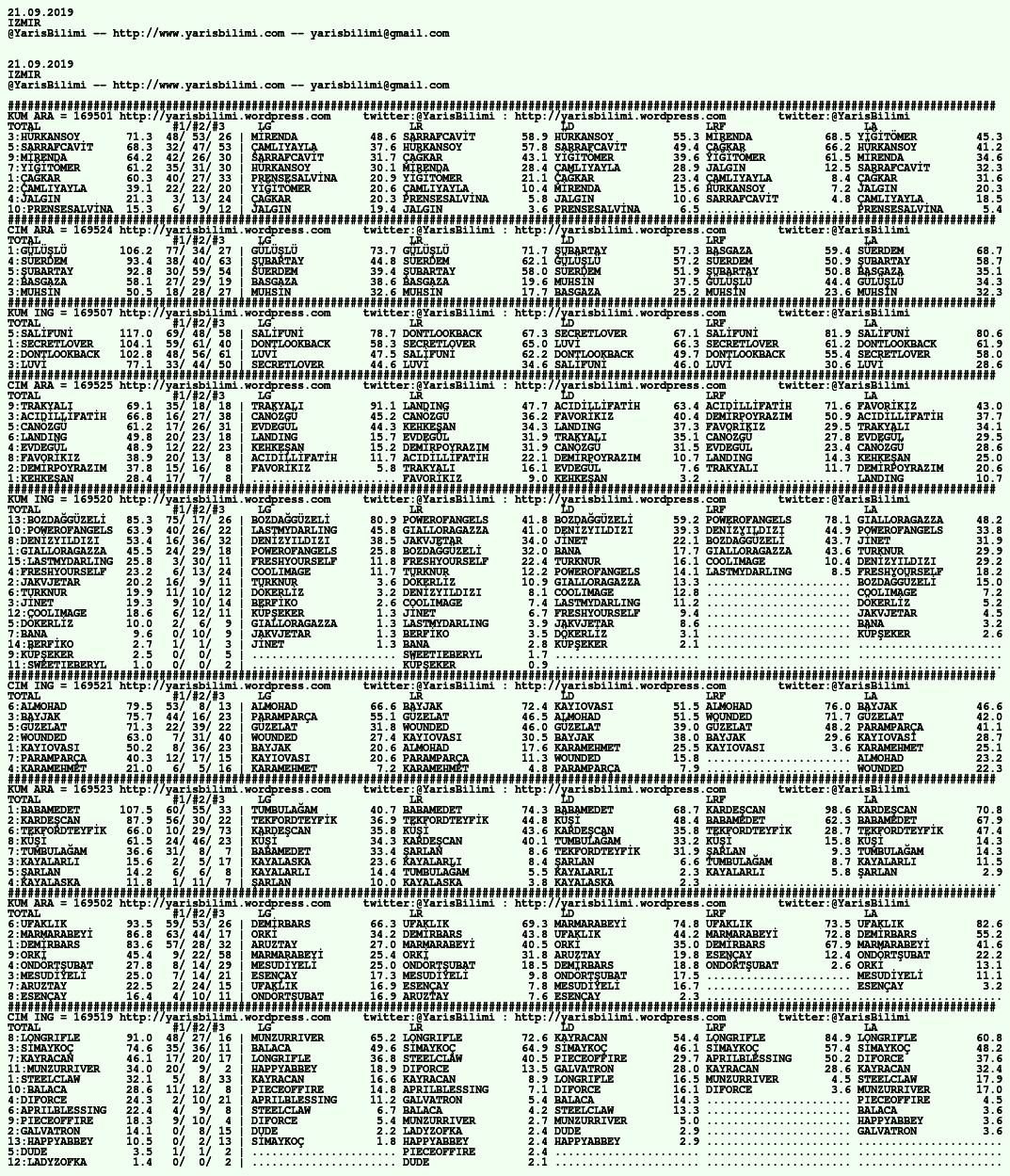 21.09.2019.IZMIR tahminleri 21 Cumartesi Eyl 2019 Posted by yarisbilimi in izmir, yorum ≈ Yorum bırakın Etiketlerizmir