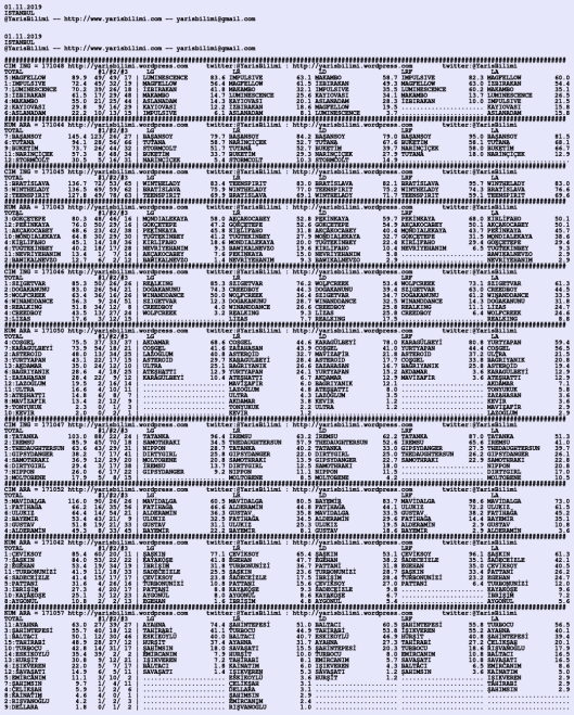 Görsel 01.11.2019.ISTANBUL tahminleri 31 Perşembe Eki 2019 Etiketleristanbul Yazan: yarisbilimi | Filed under istanbul, yorum ≈ 2 Yorum