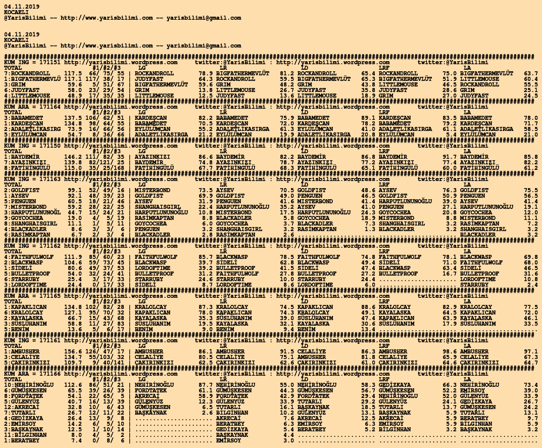 04.11.2019.BURSA tahminleri 03 Pazar Kas 2019 Posted by yarisbilimi in bursa, yorum ≈ Yorum bırakın Etiketlerbursa