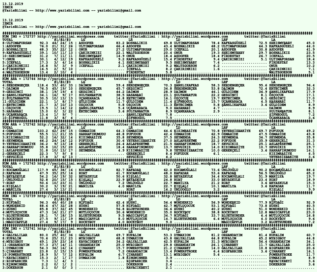 Görsel 14.12.2019.ISTANBUL tahminleri 13 Cuma Ara 2019 Etiketleristanbul Yazan: yarisbilimi | Filed under istanbul, yorum ≈ Yorum bırakın