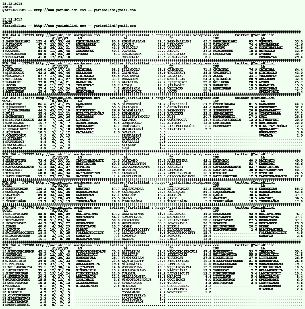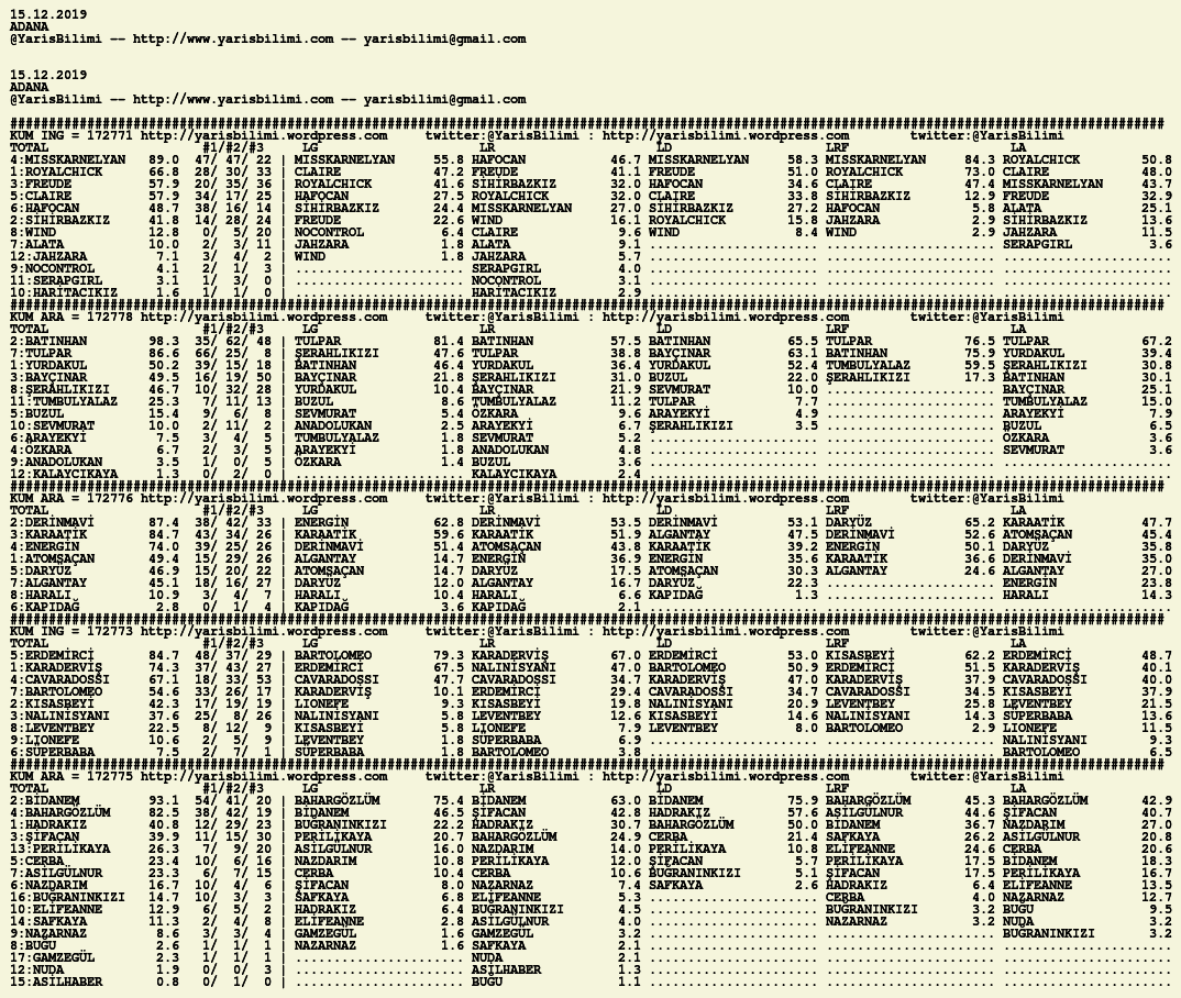 Görsel 15.12.2019.ADANA tahminleri 15 Pazar Ara 2019 Etiketleradana Yazan: yarisbilimi | Filed under adana, yorum ≈ Yorum bırakın