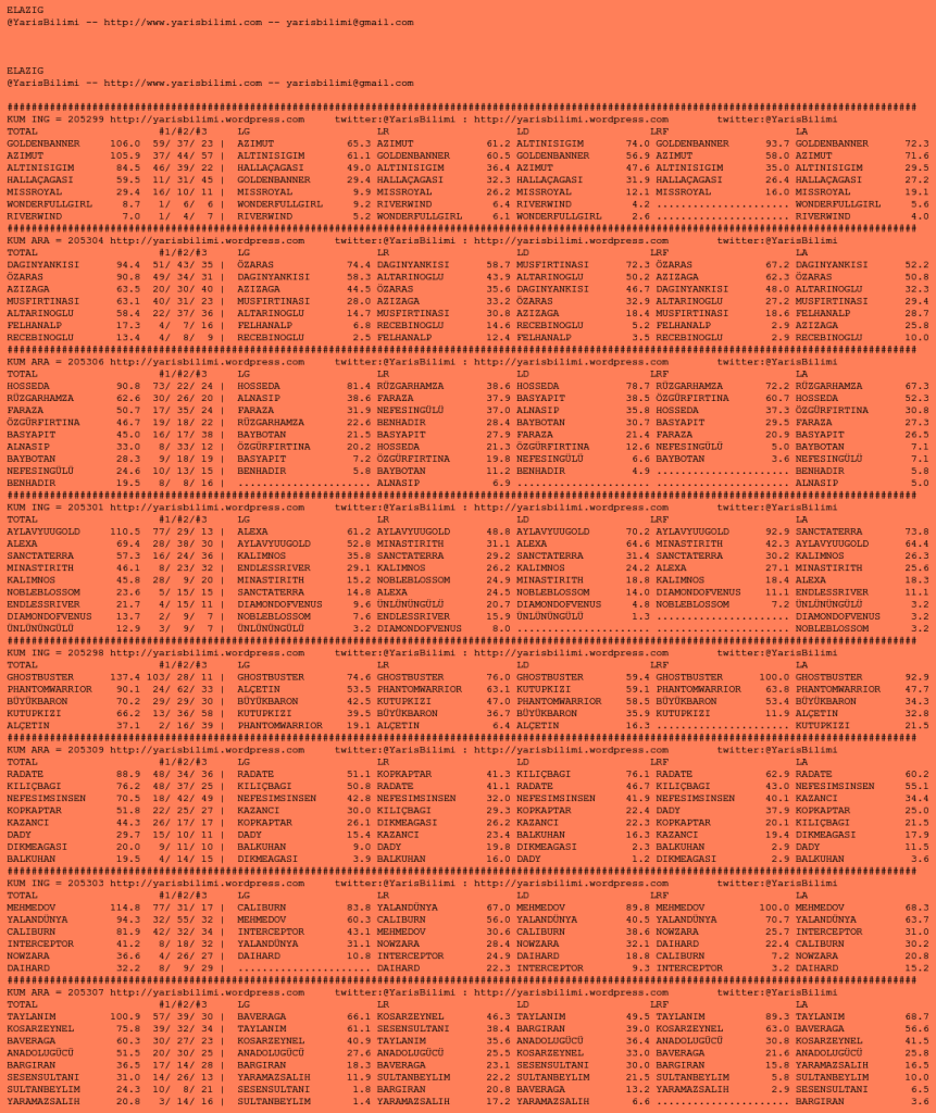 Görsel 25.09.2023.ELAZIG tahminleri 24 Pazar Eyl 2023 Etiketlerelazig Yazan: yarisbilimi | Filed under elazig ≈ 1 Yorum