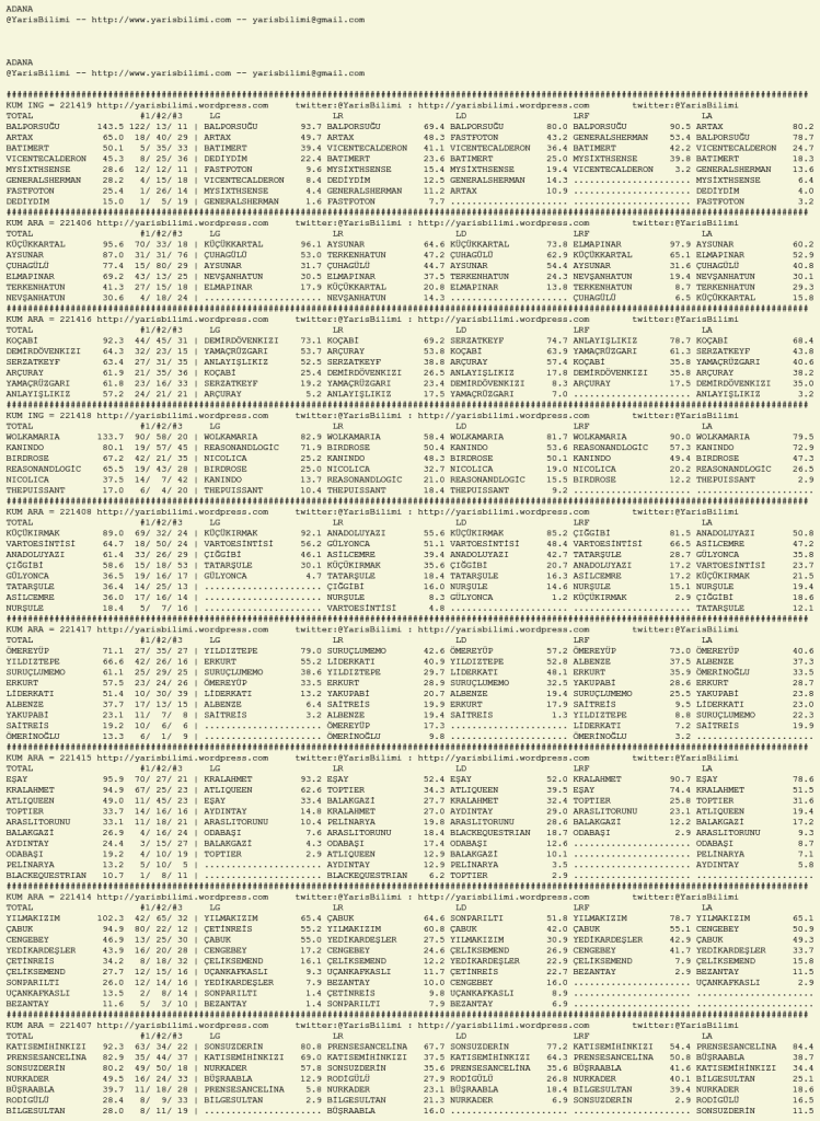 Kendi tercihlerinizi one aliniz. Bu siralamalar sizlere yardim icin hazirlanmaktadir. Ama banko, sablon tercihleriniz kisisel olmali. Eksik verileri olan atlara ozellikle dikkat edilmesini tekrarlar hepinize bol sanslar dileriz.