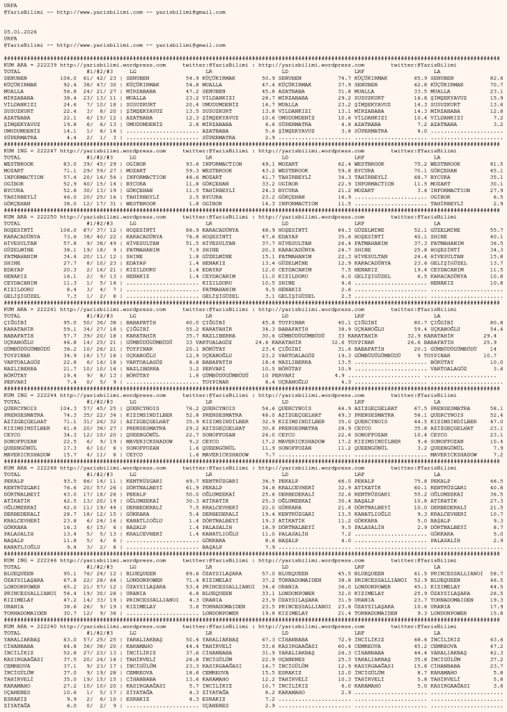 Görsel 05.01.2026.URFA tahminleri 05 Pazartesi Oca 2026 Etiketlerurfa Yazan: yarisbilimi | Filed under urfa ≈ Yorum bırakın