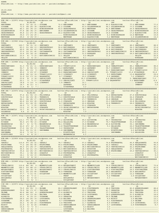 Kendi tercihlerinizi one aliniz. Bu siralamalar sizlere yardim icin hazirlanmaktadir. Ama banko, sablon tercihleriniz kisisel olmali. Eksik verileri olan atlara ozellikle dikkat edilmesini tekrarlar hepinize bol sanslar dileriz.