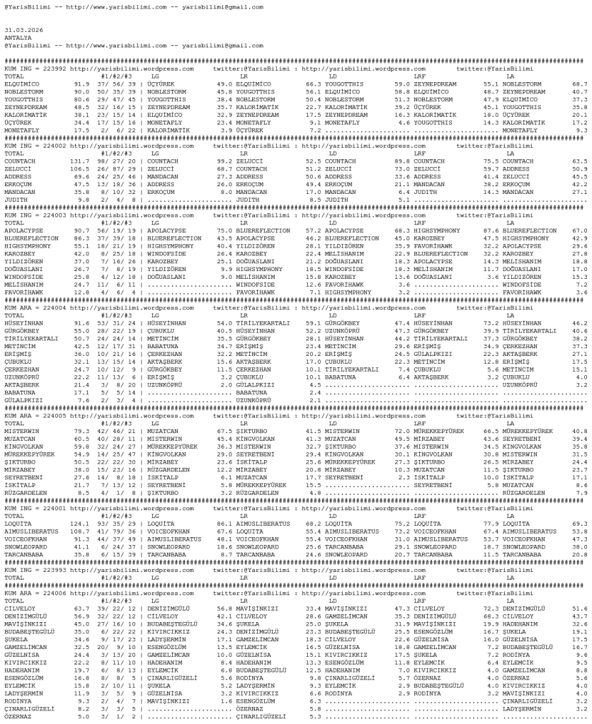 31.03.2026.ANTALYA tahminleri