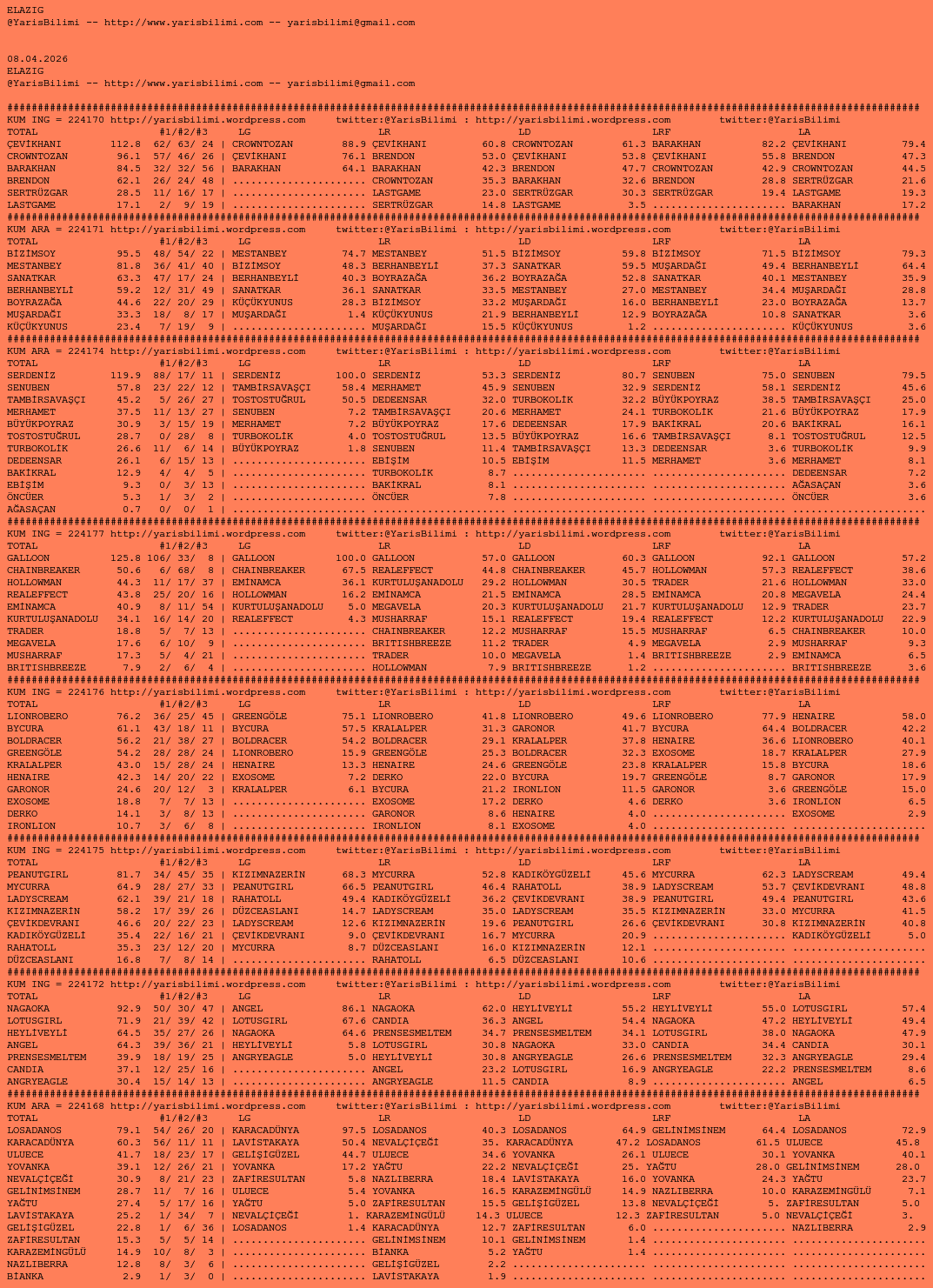 • 08.04.2026.ELAZIG tahminleri