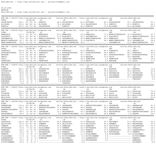 Kendi tercihlerinizi one aliniz. Bu siralamalar sizlere yardim icin hazirlanmaktadir. Ama banko, sablon tercihleriniz kisisel olmali. Eksik verileri olan atlara ozellikle dikkat edilmesini tekrarlar hepinize bol sanslar dileriz.