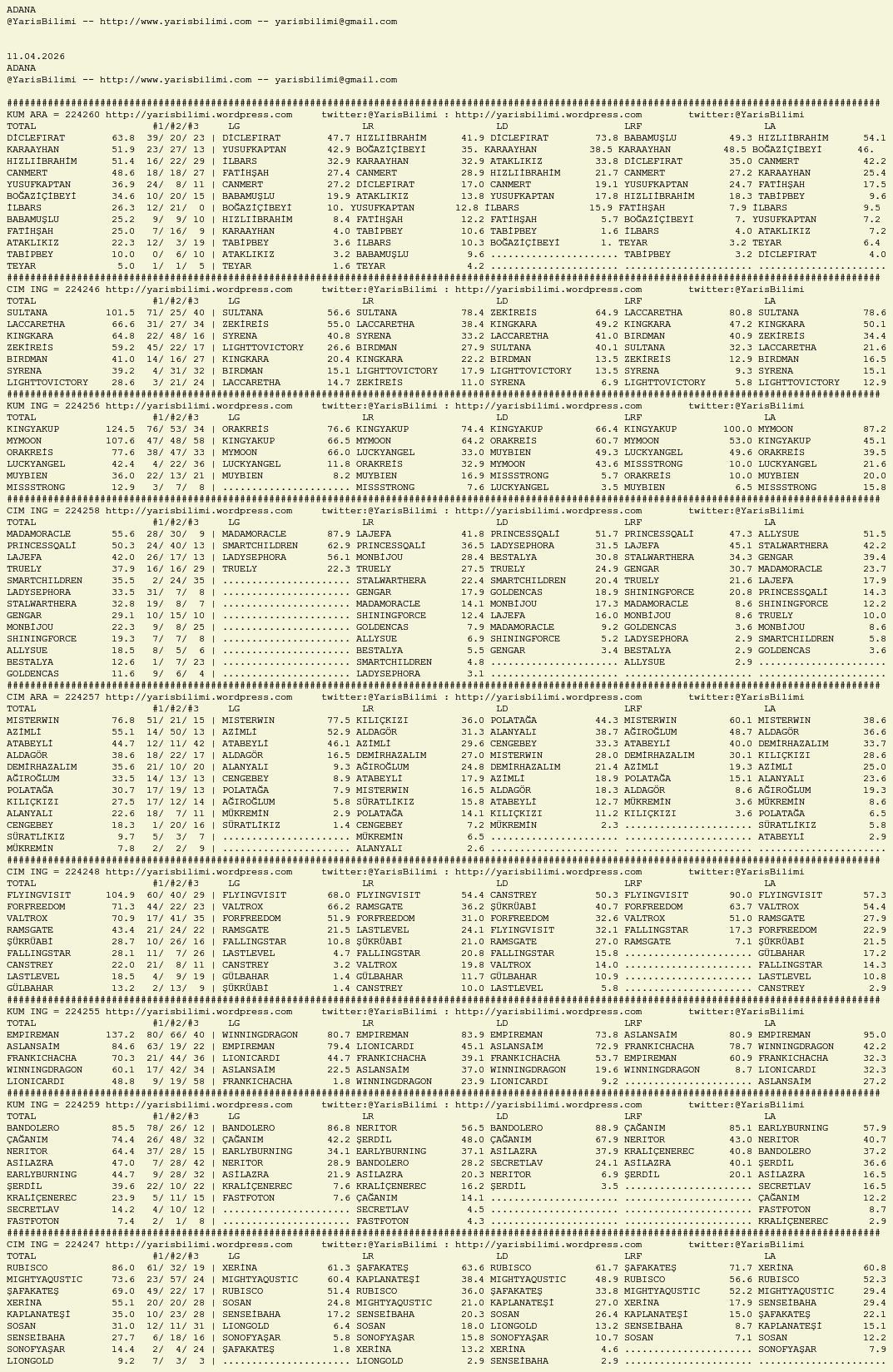 • 11.04.2026.ADANA tahminleri