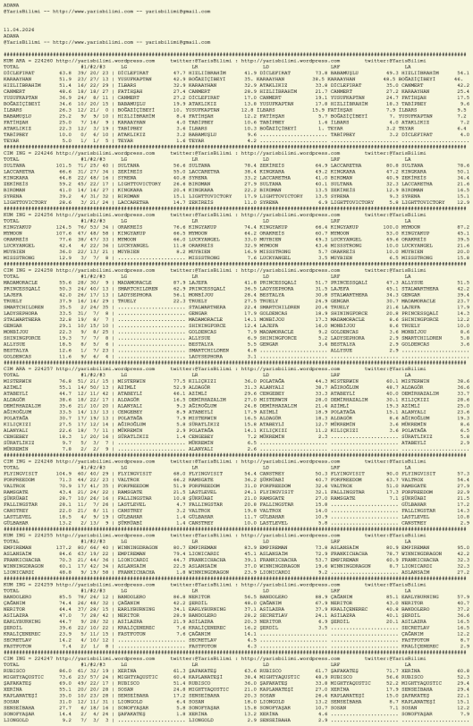 Kendi tercihlerinizi one aliniz. Bu siralamalar sizlere yardim icin hazirlanmaktadir. Ama banko, sablon tercihleriniz kisisel olmali. Eksik verileri olan atlara ozellikle dikkat edilmesini tekrarlar hepinize bol sanslar dileriz.