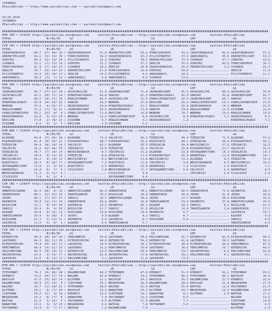 29.04.2026.ISTANBUL tahminleri