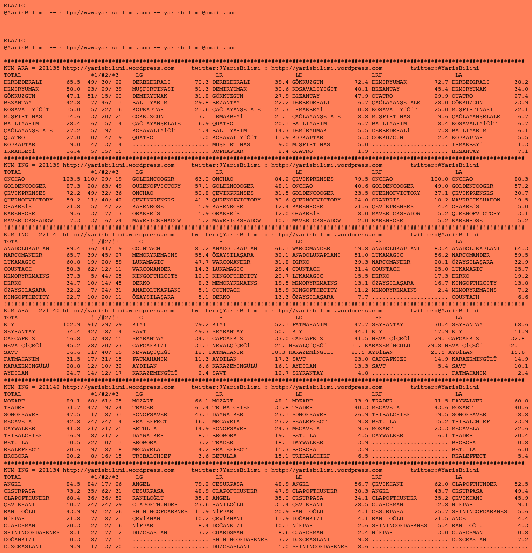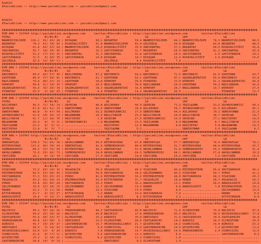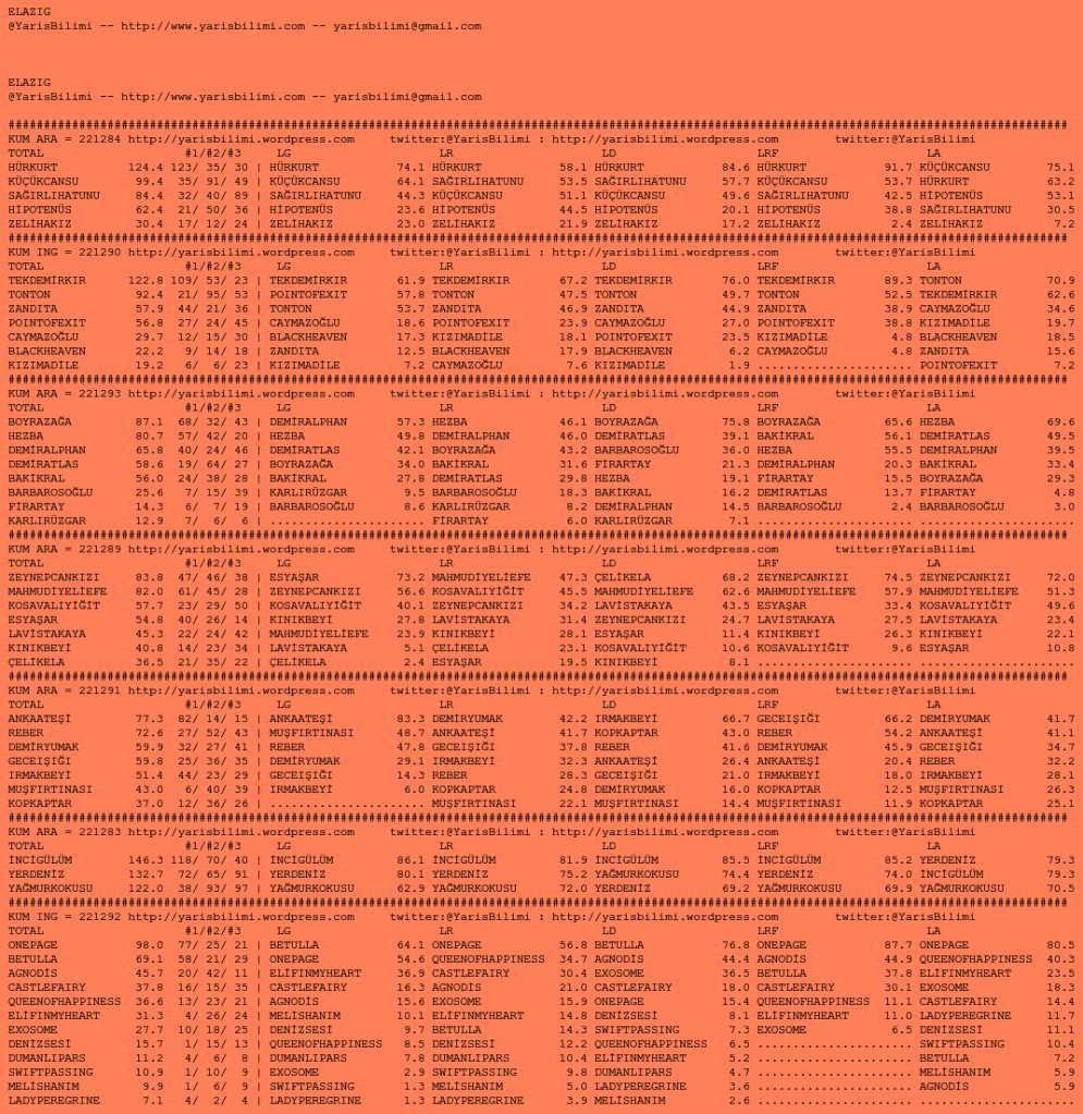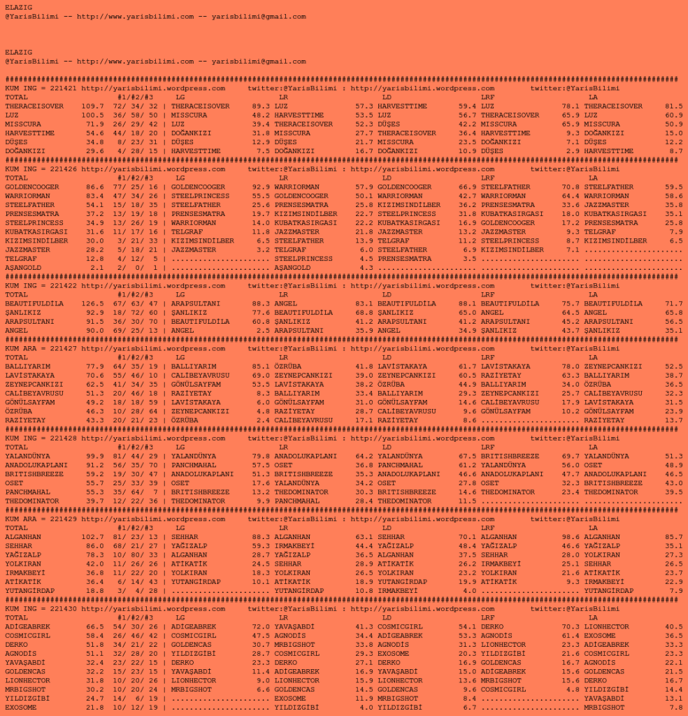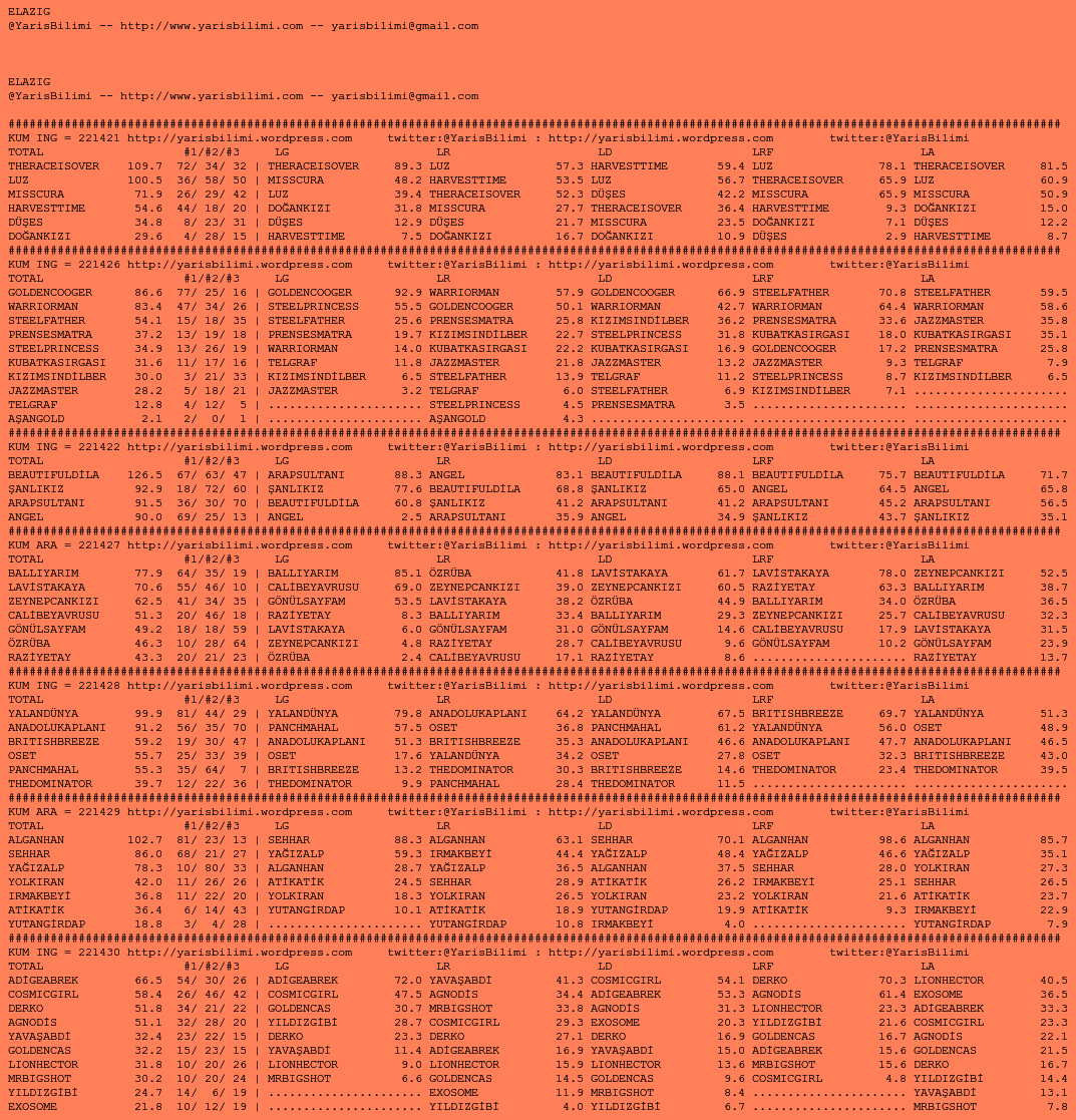 Kendi tercihlerinizi one aliniz. Bu siralamalar sizlere yardim icin hazirlanmaktadir. Ama banko, sablon tercihleriniz kisisel olmali. Eksik verileri olan atlara ozellikle dikkat edilmesini tekrarlar hepinize bol sanslar dileriz.